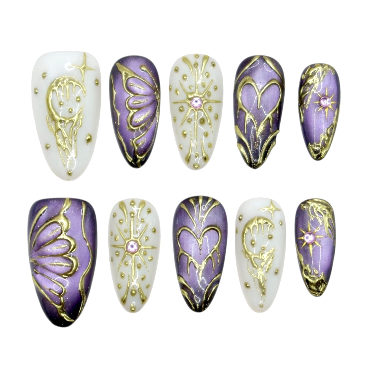 Soft lavender tones paired with delicate gold detailing.