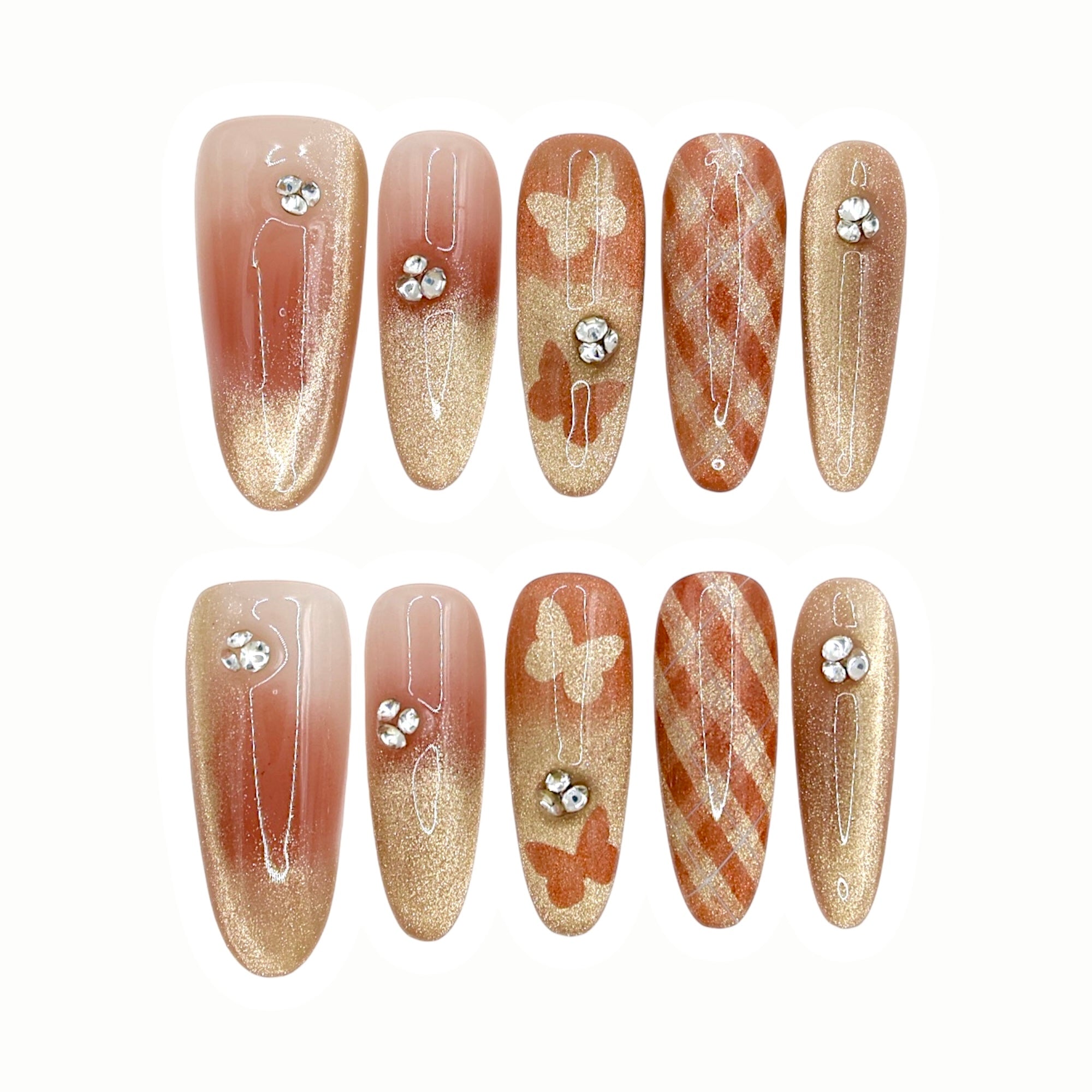 Butterflies, plaid, and golden shimmer come together in cozy cinnamon tones—like a soft breeze on an autumn afternoon.