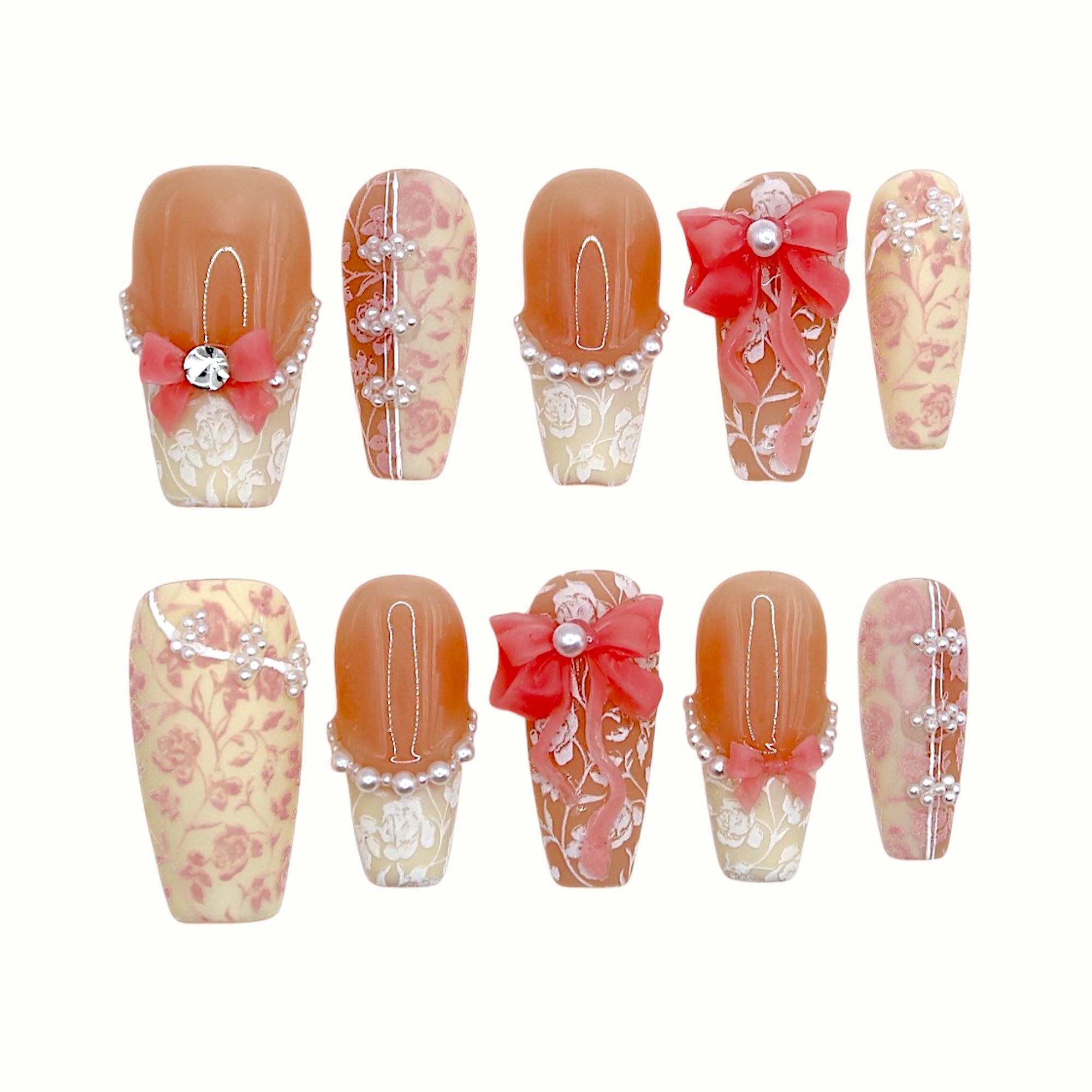 Inspired by a girl’s jewelry box — filled with pearls, lace, bows, and soft vintage florals.