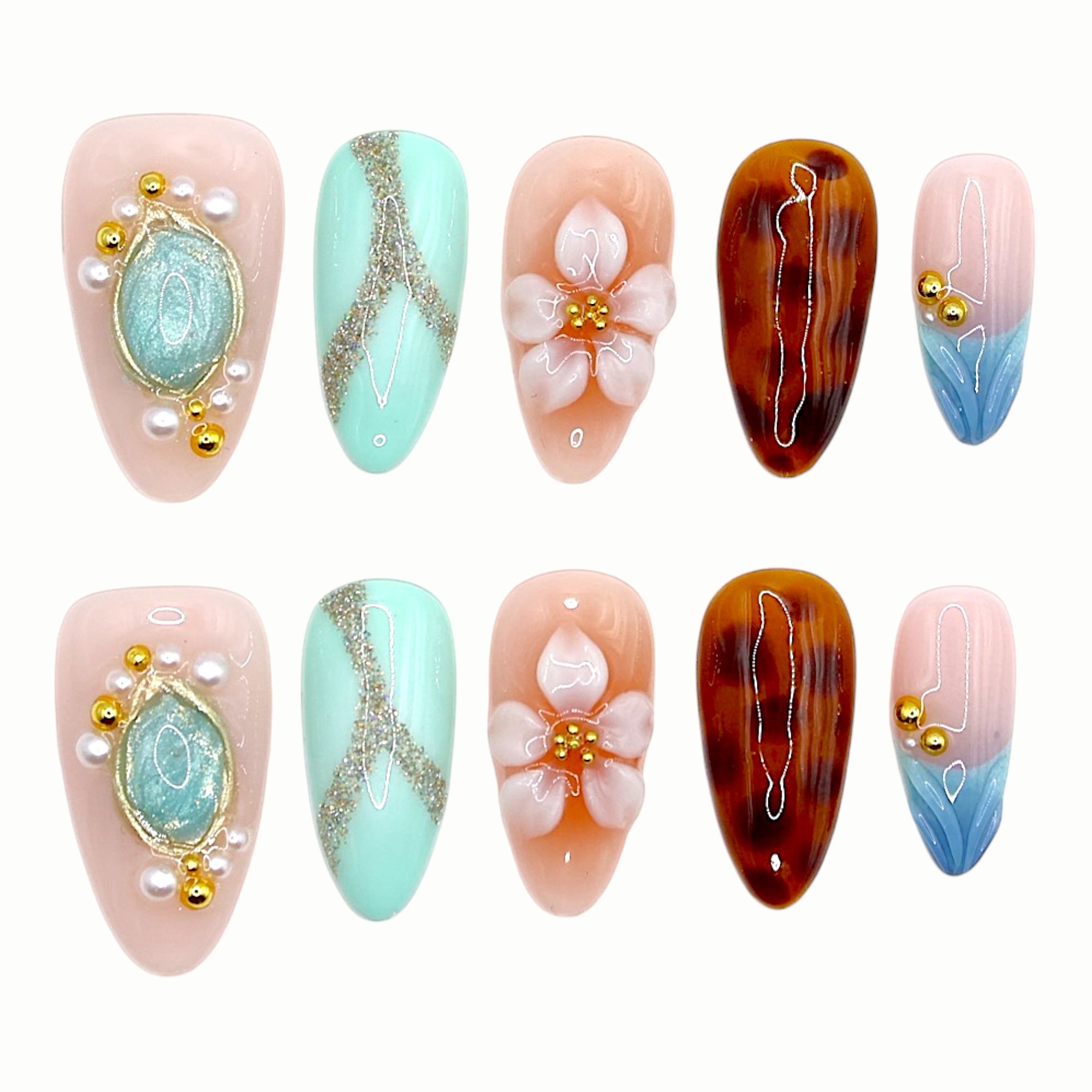 A serene blend of sea-green and amber brown, reminiscent of sunlit shells by the shore. Subtle shimmer and golden lines evoke the calm rhythm of the ocean, embodying quiet sophistication.