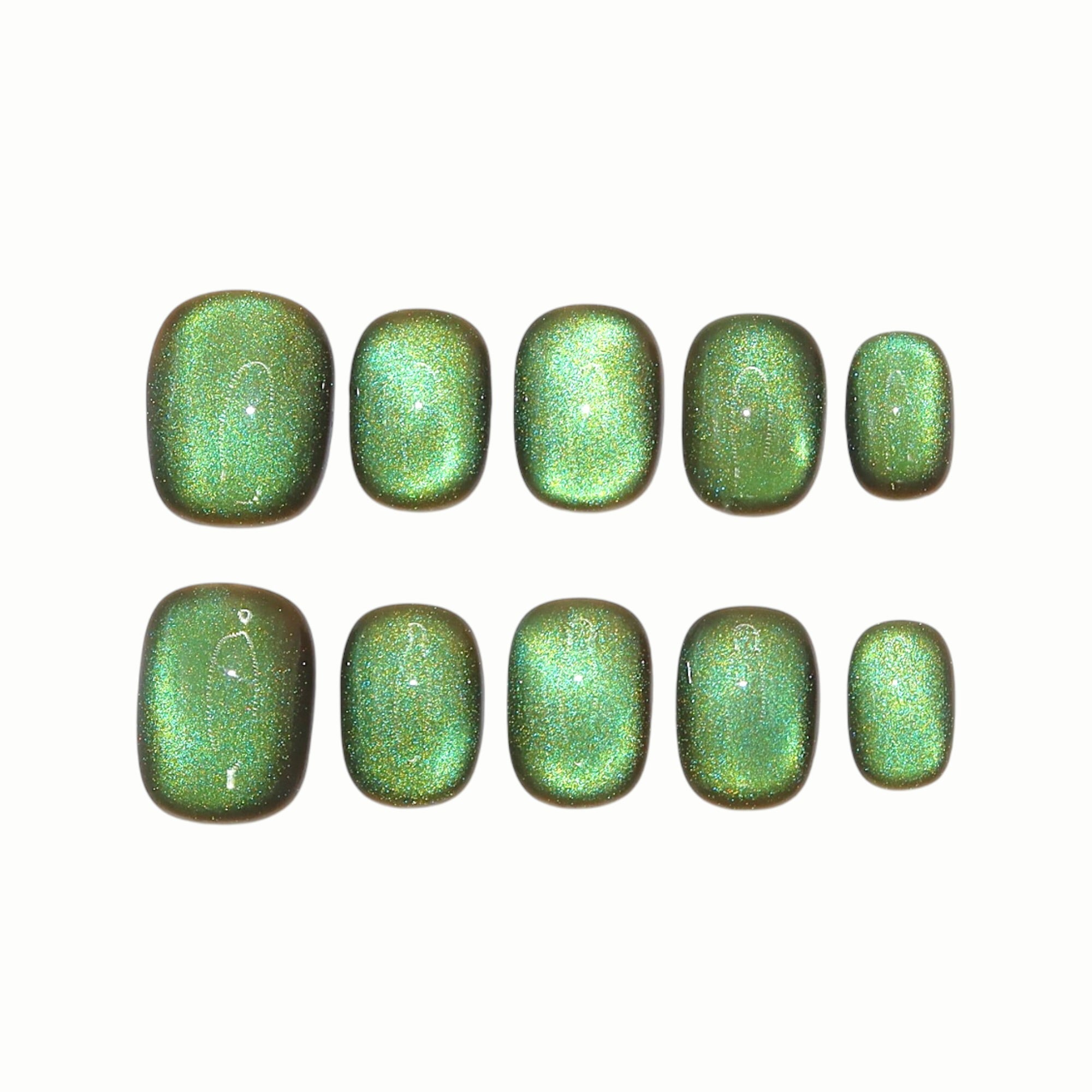 A fresh grass-green base with delicate shimmer—like morning dew catching sunlight, soft, luminous, and alive.